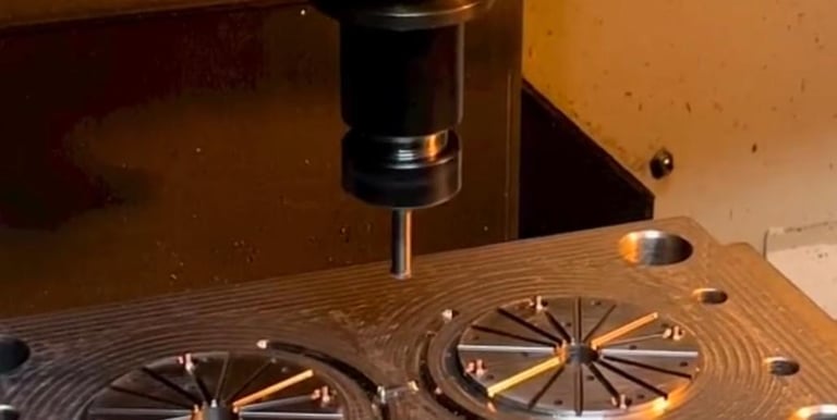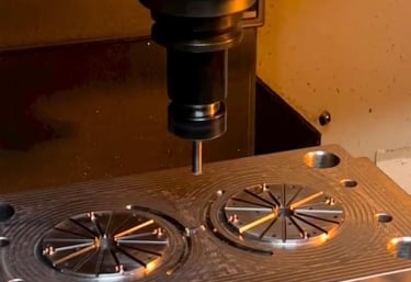 Close-up of a precision metal mold being crafted in a modern workshop.